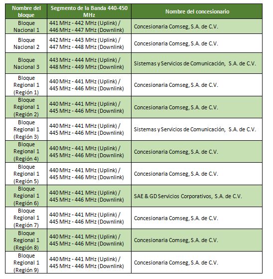El espectro concesionado se destinará al servicio de provisión de capacidad para sistemas de radiocomunicación privada, con lo que los concesionarios podrán comercializar espectro a los clientes que lo requieran, para cubrir sus necesidades de comunicaciones internas o privadas sin fines de explotación comercial; atendiendo así una añeja demanda de más de dos décadas.